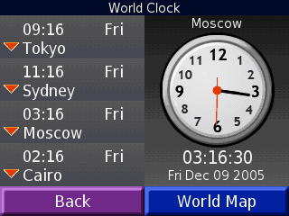 World Clock - часы, отображающие время в пяти временных зонах. Вы можете поменять часовые пояса, выбрав интересующие вас города.