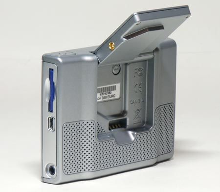 Garmin Nuvi имеет раскладную антенну, жёстко фиксирующуюся в одном из четырёх положениях. При откидывании антенны прибор автоматически производит поиск спутников, а как только вы сложите антенну - навигатор переходит в режим работы "в помещении", выключая GPS-приёмник. Как вы можете видеть на фотографии сверху, гнездо для подключения внешней GPS антенны установлено на торце встроенной антенны, так что какую бы антенну вы ни использовали, для активации режима GPS придётся откидывать основную антенну. В общем-то, учитывая, что Nuvi вы можете использовать не только для навигации, это вполне логично.