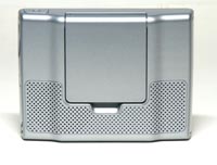 Корпус из серебристого пластика, с закруглёнными углами. На корпусе всего одна кнопка "Power", установленная сверху. Она сделана заподлицо с поверхностью корпуса и нажимается очень туго, так что случайно прибор не включится. На правой грани девайса размещено одно 3.5 мм гнездо для наушников, порт Mini_USB и слот для флэш-карты. Никаких физических органов управления - их заменяет сенсорный экран.